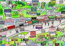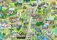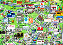 The material provided in this website is for informational purposes only.  The creator of this interactive graphic map does not endorse or warrant any of the businesses or organizations listed or portrayed in this grapic. Advertising Strategy Consultants is not responsible for the information contained in each business or organization's web page or website.